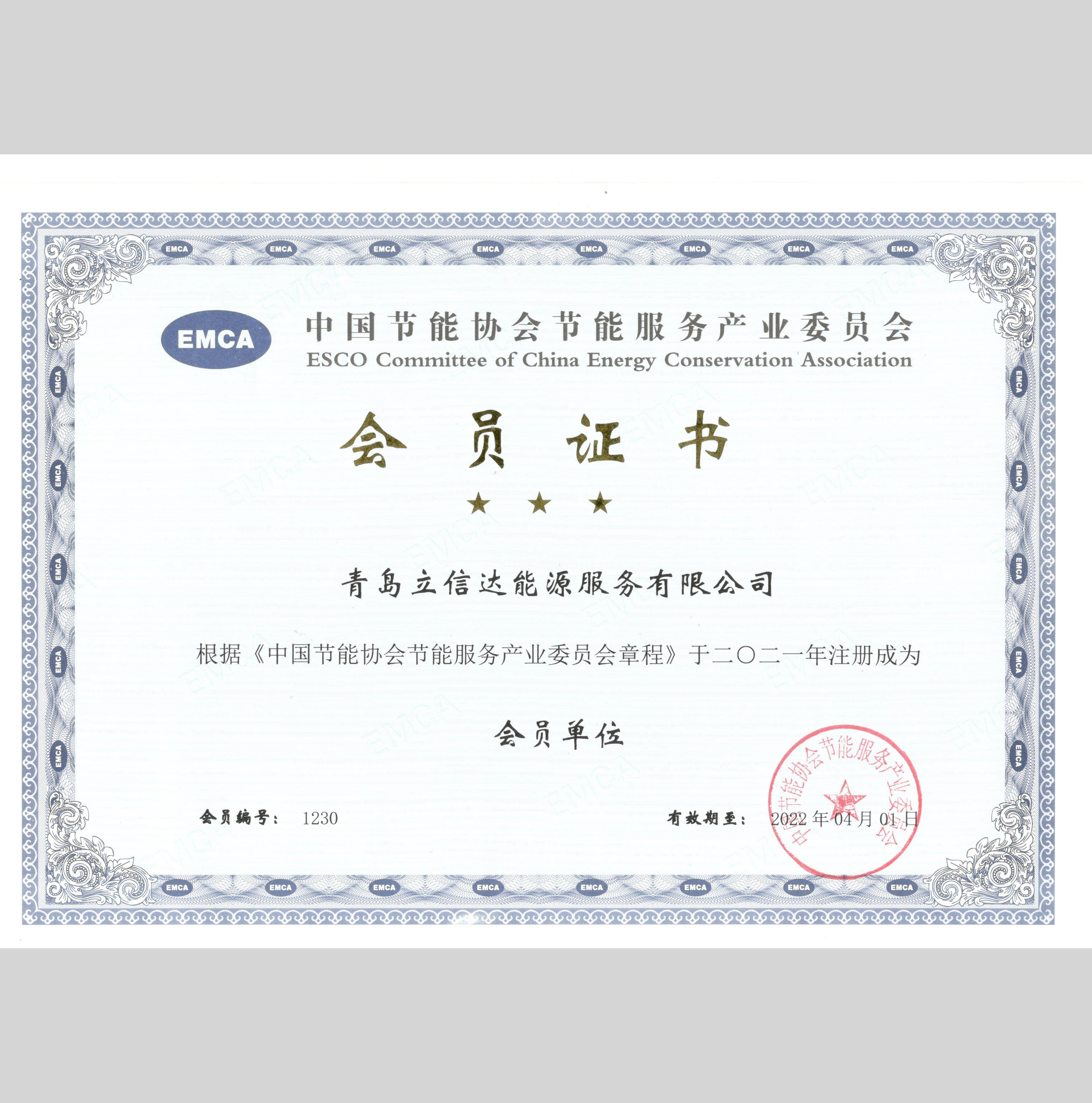 中国节能协会会员证书