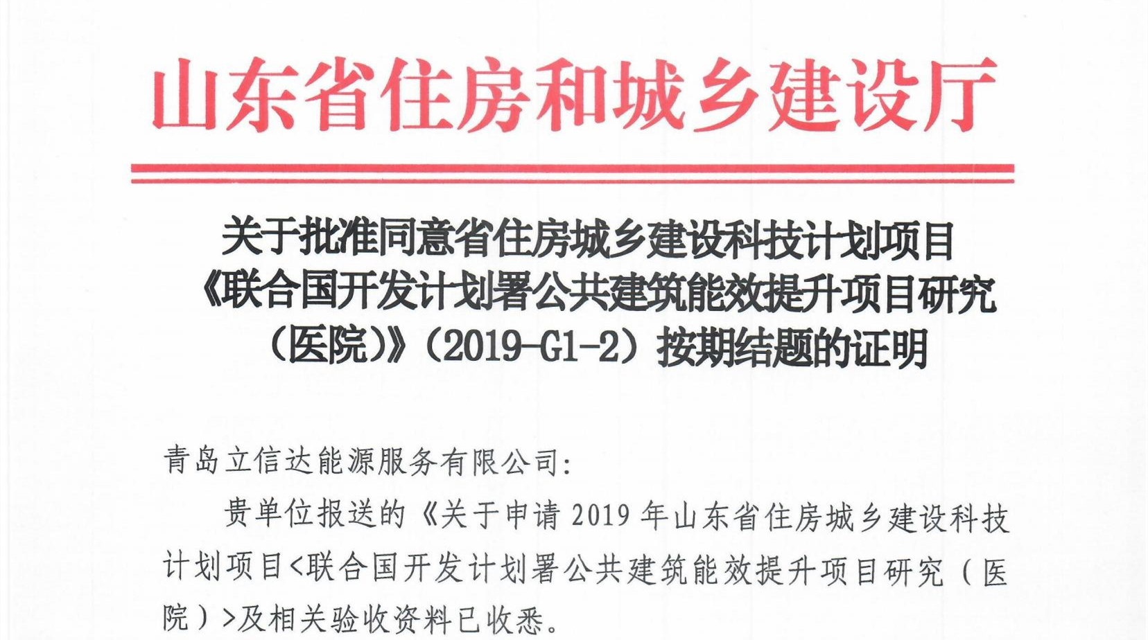 由我单位报送的《关于申请2019年山东省住房城乡建设科技计划项目联合国开发计划署公共建筑能效提升项目研究(医院)》已通过验收。...
